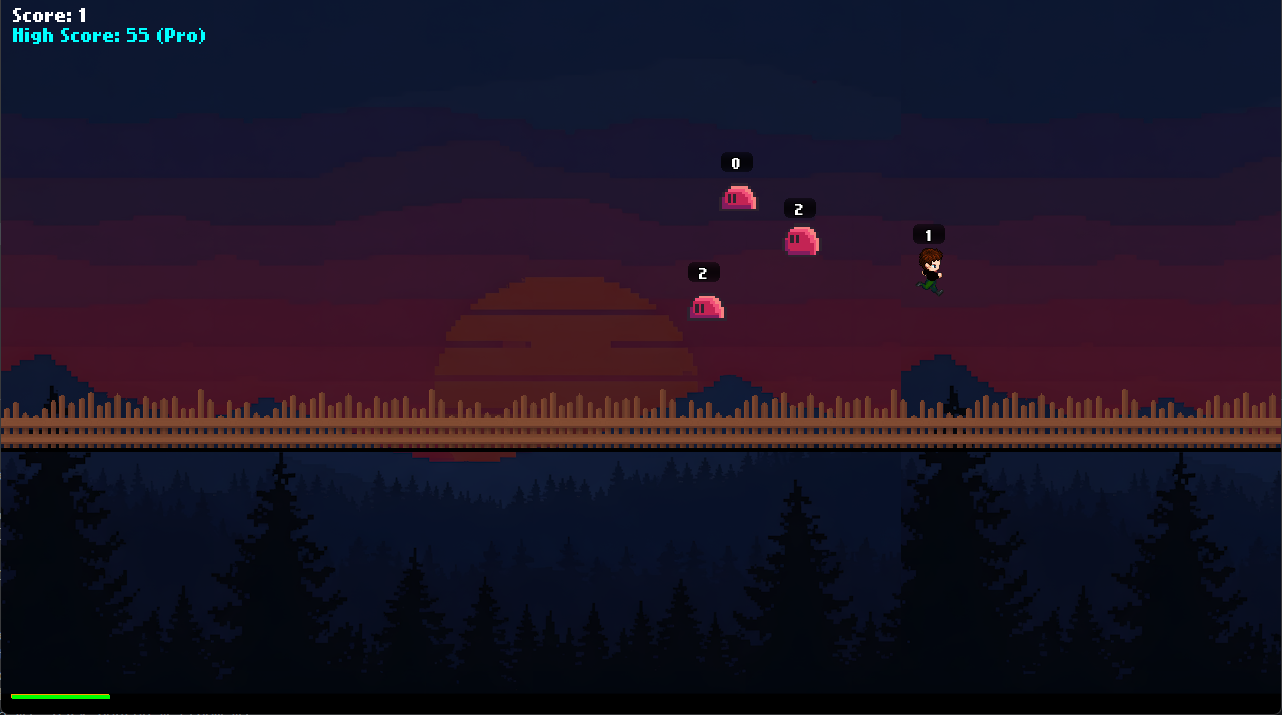 The aim of the game is to jump on top of slimes with lower or equal scores to your score.